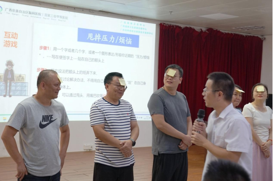 本次講座特別邀請(qǐng)廣西腦科醫(yī)院精防辦副主任葉凡佩為集團(tuán)干部職工講授壓力識(shí)別與紓解的相關(guān)知識(shí)。短短一課,葉老師以“識(shí)別—接納—調(diào)節(jié)—轉(zhuǎn)化”四步,為我們拆解情緒“密碼”。他以互動(dòng)游戲開(kāi)場(chǎng),引出心理壓力的定義及來(lái)源,同時(shí)結(jié)合其親身經(jīng)歷與工作經(jīng)驗(yàn),輔以視頻案例解析、穴位按摩、正念冥想、交流問(wèn)答等方式引導(dǎo)大家正確地識(shí)別壓力,用健康積極地心態(tài)擁抱“壞”情緒,用平和、自適應(yīng)的方式和渠道紓解壓力,最終逐步構(gòu)建起強(qiáng)大的心理"抗壓緩沖區(qū)"。