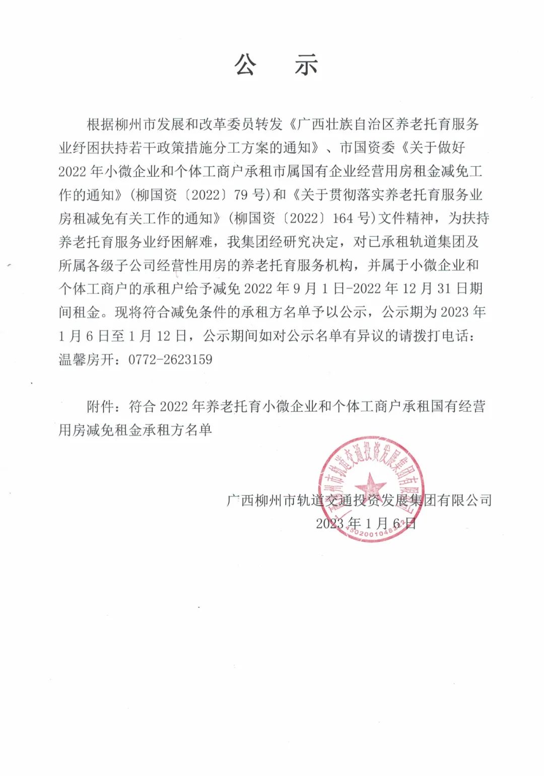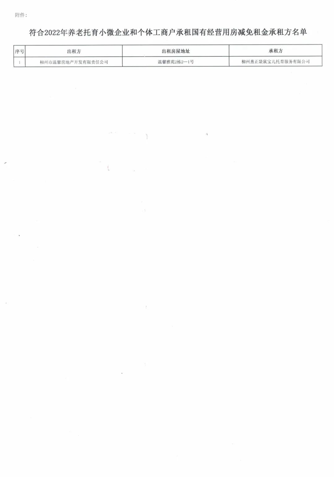 軌道集團關(guān)于符合2022年養(yǎng)老托育機構(gòu)減免租金承租方名單的公示